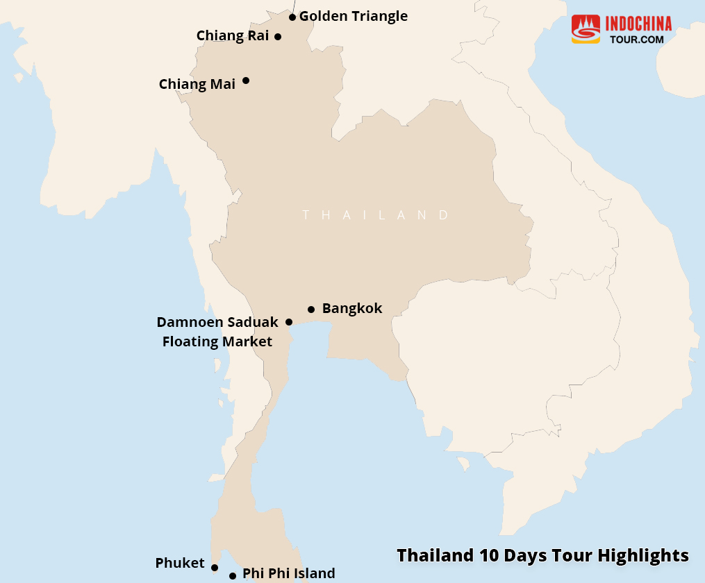10 Days Thailand Thrilling Tours for Adventure EnthusiastsTour Route:Bangkok – Chiang Mai – Khao Sok National Park - Koh Phangan – Koh Samui – Phuket - Koh Phi Phi – Phuket