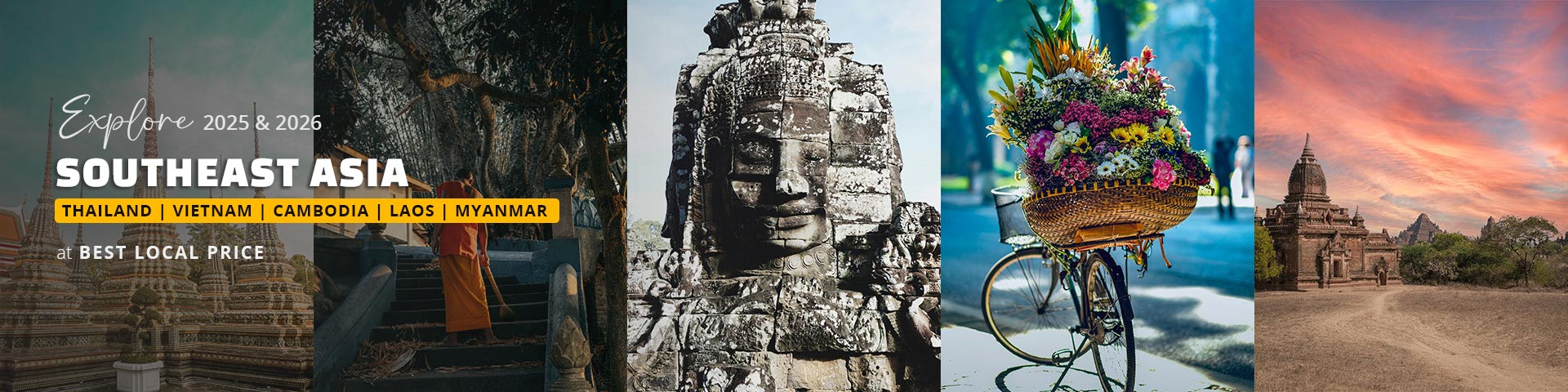 This 26-day tour covers five countries of Southeast Asia, including Thailand, Myanmar, Laos, Cambodia and Vietnam. With this tour, you will get the chance to explore the most highlighted destinations in these countries, such as Damnoen Saduak Floating Market, Inle Lake, Valley of a Thousand Temples, Kuang Xi Waterfall, Angkor Wat, Tonle Sap Lake, Phu Quoc Island etc.